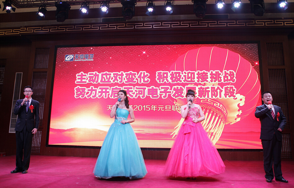 2014年12月31日下午4時(shí)整,天河電子2015年元旦晚會(huì)在星光大酒店二樓場(chǎng)鑫軒隆重舉行,大會(huì)表彰了2015年度在市場(chǎng)、研發(fā)、工程等領(lǐng)域作出突出貢獻(xiàn)的優(yōu)秀團(tuán)隊(duì)和個(gè)人。公司總經(jīng)理苗立在會(huì)上做了重要講話,總結(jié)了2014年我們所做出的成績(jī)和不足,分析了公司目前所處的內(nèi)外形勢(shì),并為公司2015年的工作指明了方向。